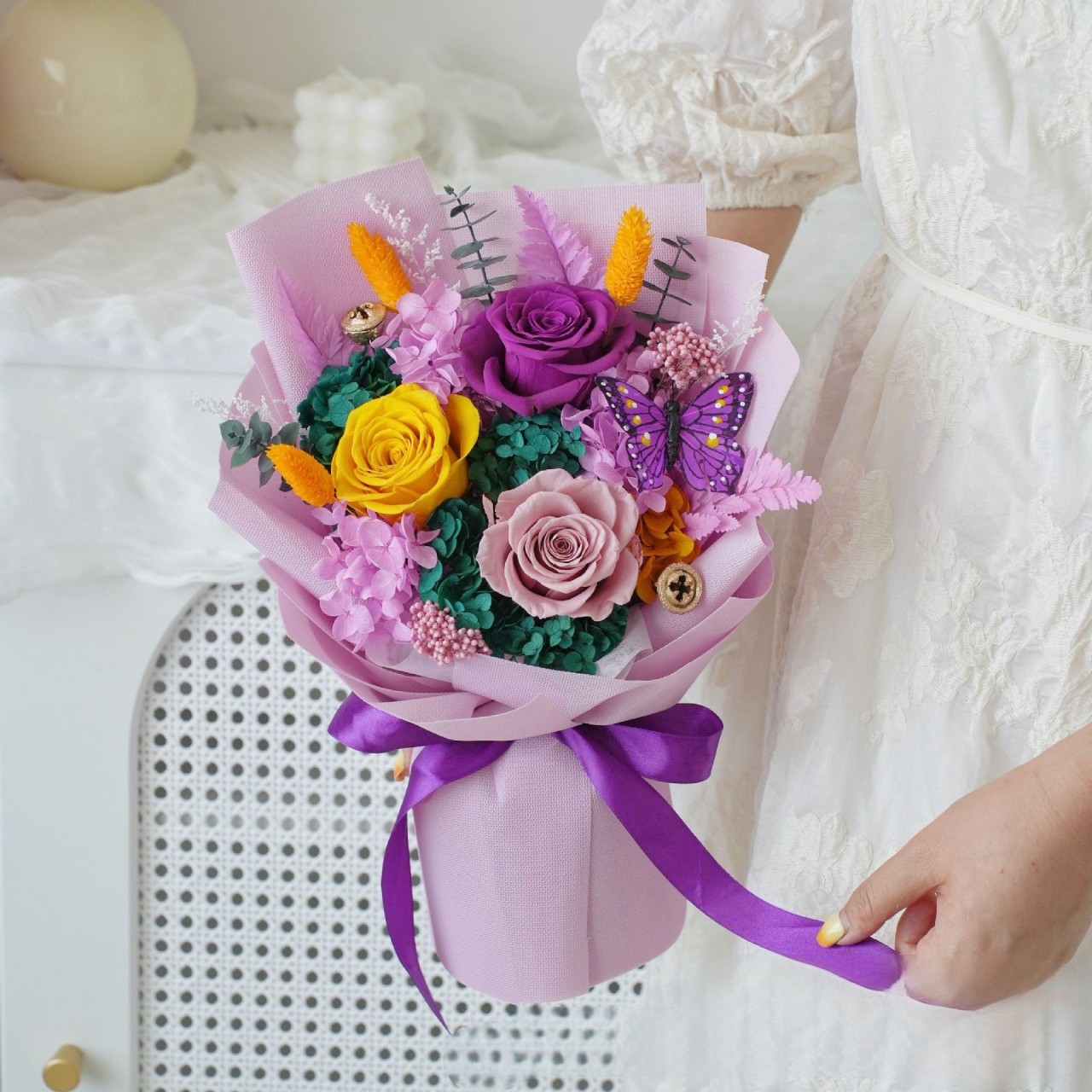 - Schützen Sie Blumen, indem Sie direktes Sonnenlicht vermeiden. Bei richtiger Pflege können Sträuße 3-5 Jahre halten.