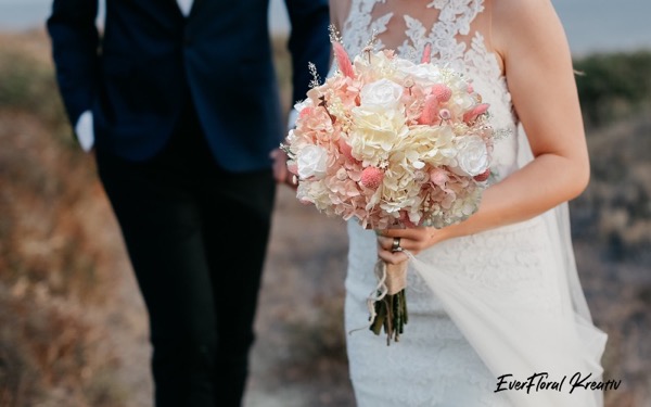 Dieser traumhafte Brautstrauß verkörpert romantische Eleganz und zeitlose Schönheit. Die Kombination aus konservierten Rosen in zarten Pastellfarben und filigranen Trockenblumen sorgt für ein harmonisches und ästhetisches Gesamtbild. Perfekt für Bräute, die nach einem unvergänglichen und einzigartigen Strauß suchen.