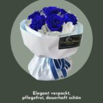 Unsere blaue konservierte Rosen benötigen kein Wasser und keine Pflege. Sie bleiben jahrelang schön und sind damit eine nachhaltige und stilvolle Alternative zu frischen Blumen.
