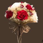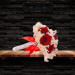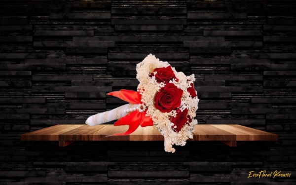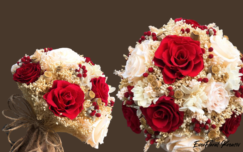 Dieses bezaubernde Brautbouquet kombiniert rote und weiße konservierte Blumen mit natürlichen Akzenten im Vintage-Stil. Perfekt für rustikale Hochzeiten und langlebig dank hochwertiger Konservierung.